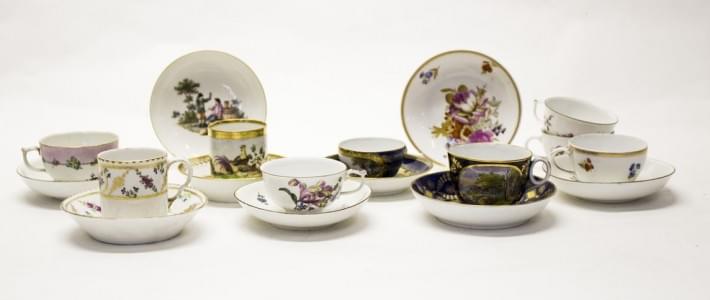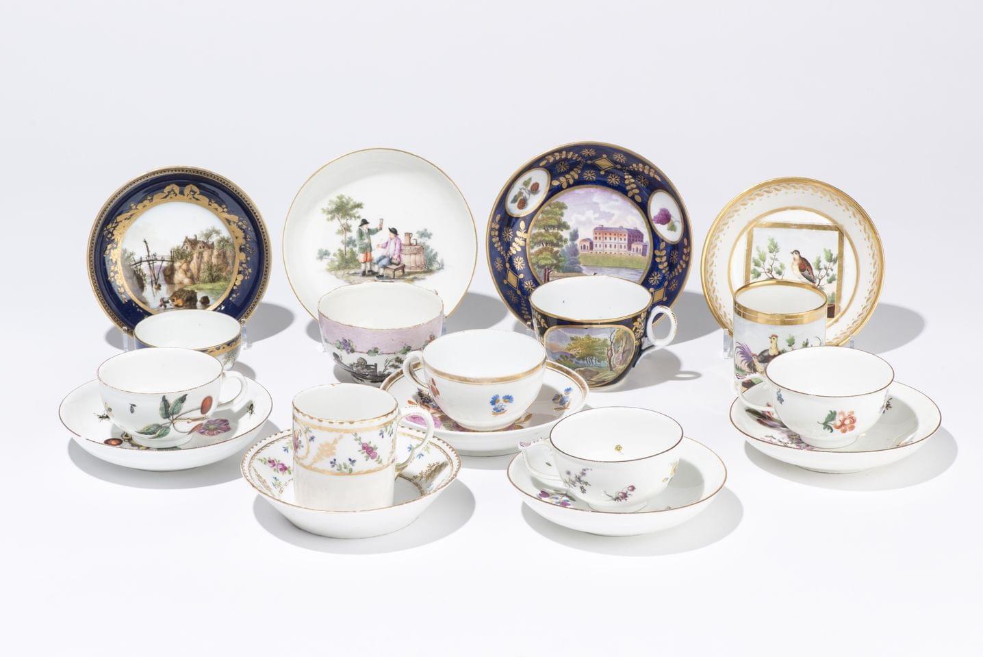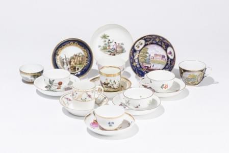 Le premier à décor de guirlandes et d'un panier de fleurs sur fo...