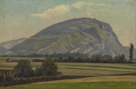 Le Salève, huile sur toile, signée, datée au dos, 32x48 cm