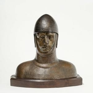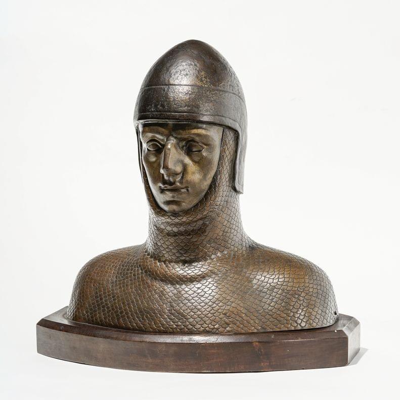 Buste de chevalier, cuivre patine médaille, signé et daté 1914, H 43 cm