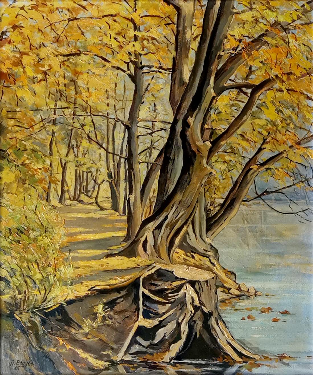 Saint-Jean, Falaises, huile sur toile, signée et datée, 55x46 cm