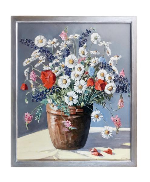 Vase fleurì, huile sur toile, signée et datée 57, 55x46 cm