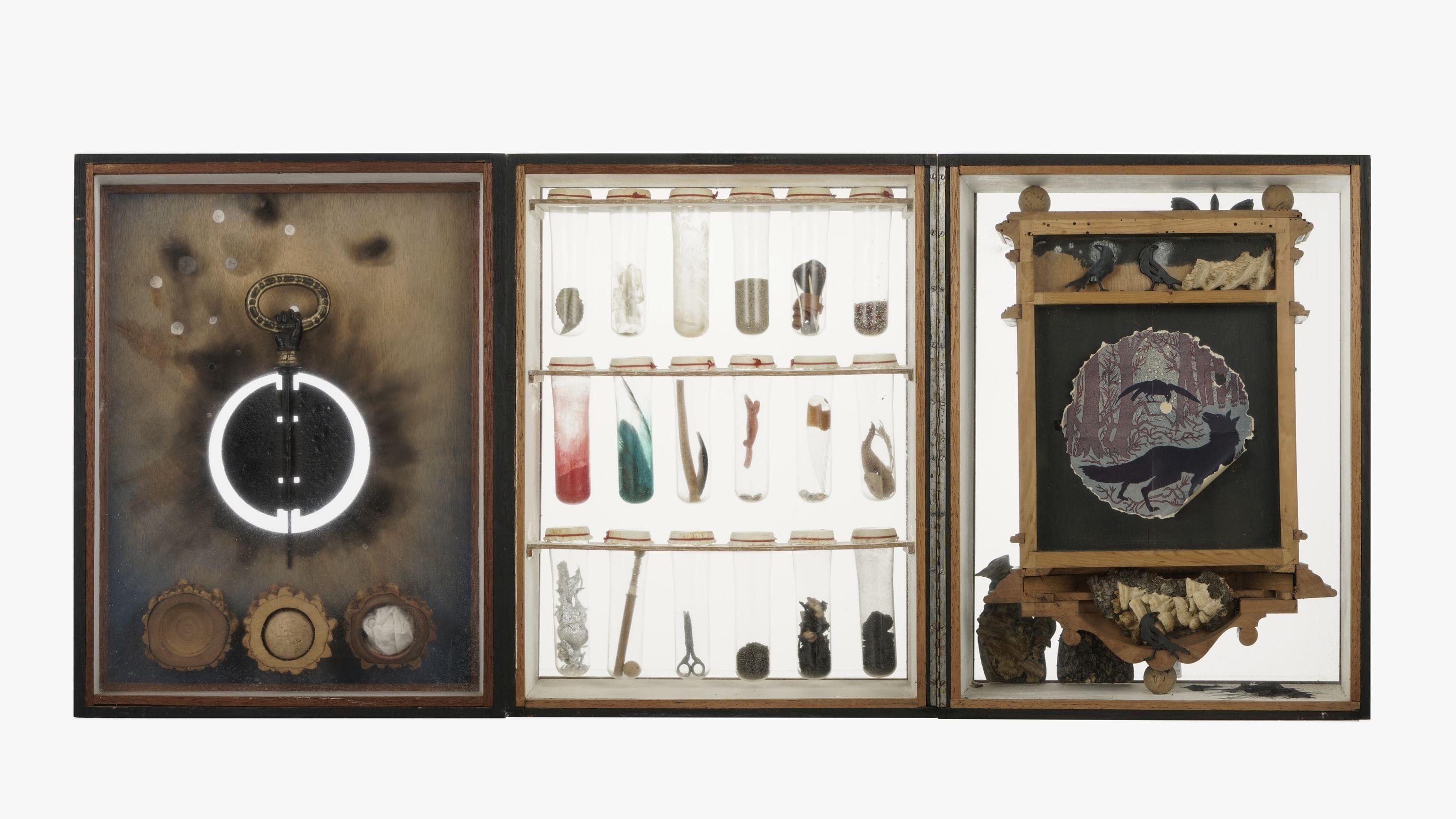 Triptyque, technique mixte, signée et datée 75, 45x34x33 cm