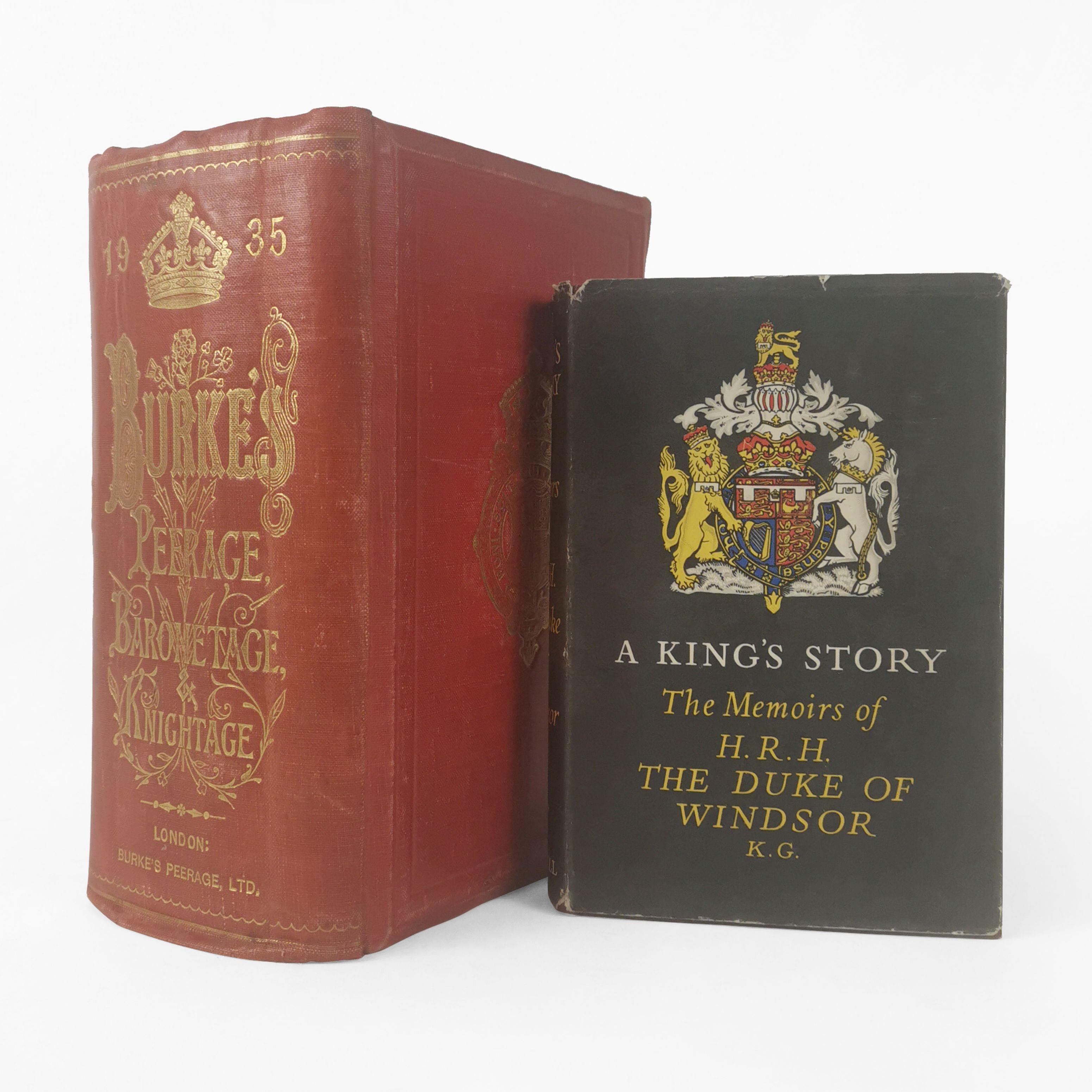 Enrichi d'un autographe du Duke de Windsor à Françoise Ruaff et daté Février 1957On joint: Burke (Sir Bernard et Ashworth P.), A Genealogical and Heraldic History of The Peerage and Baronetage, Londres, E.M.Swinhoe, 1935
