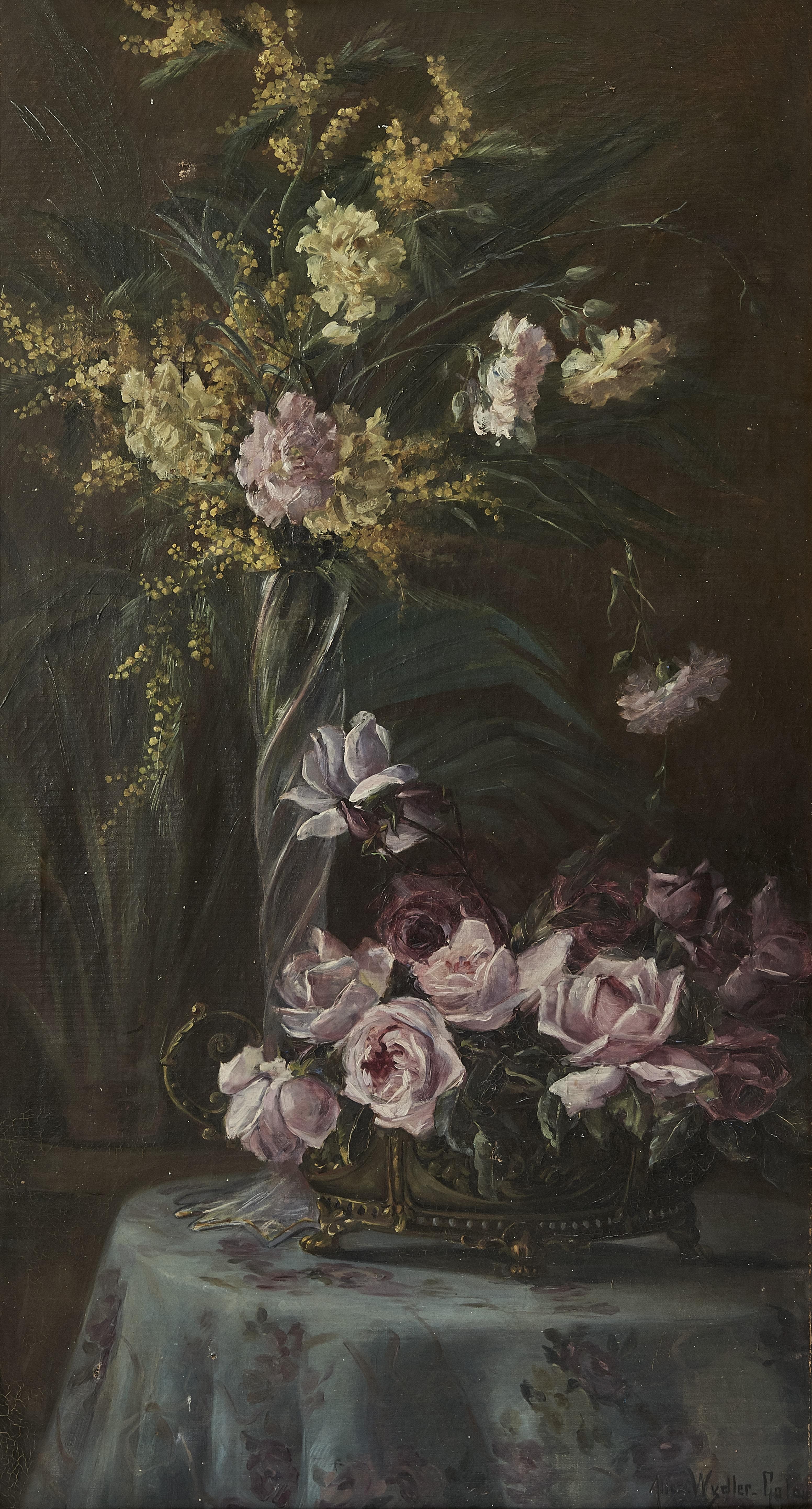 Bouquet, huile sur toile, signée, 116x63 cm