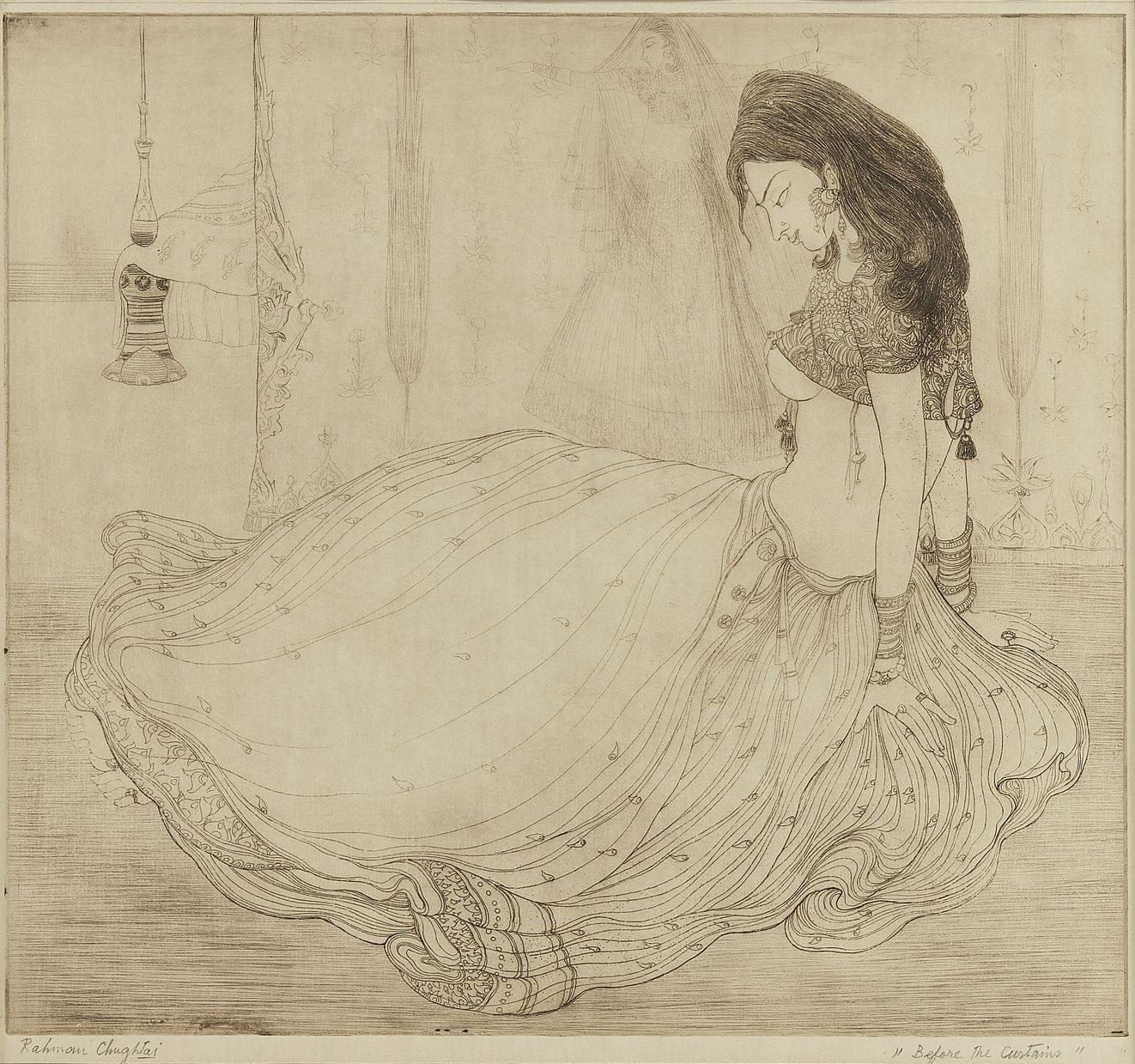 Before the Curtains, estampe, signée et titrée, 36x38 cm. On joint un livre sur l'artiste.