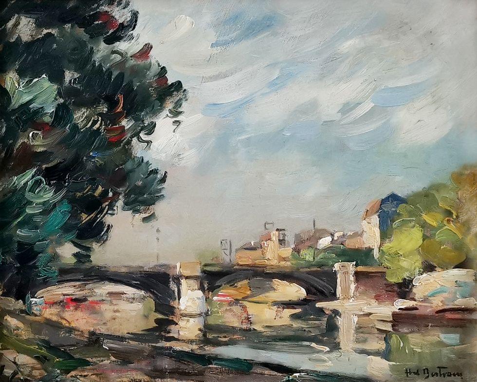 Le pont Charenton, huile sur panneau, signée, 21,5x27 cm