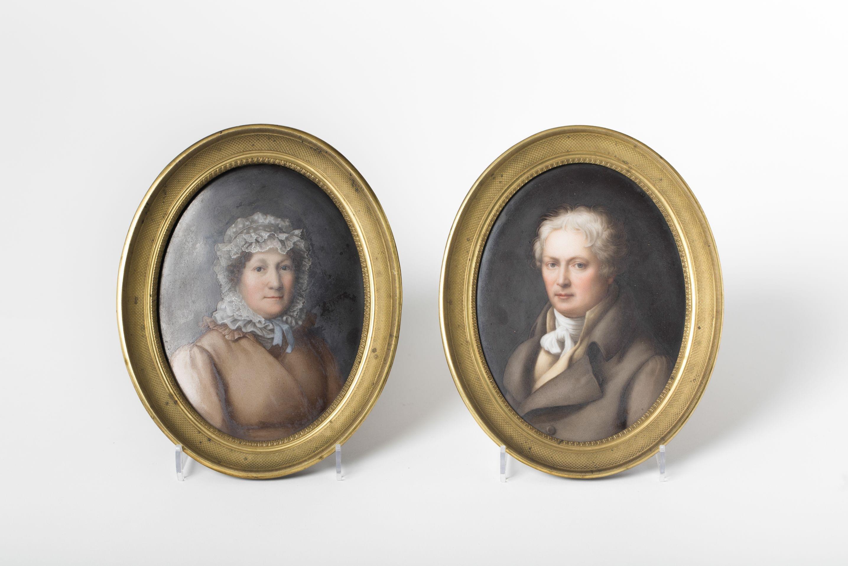 Portrait de François Constantin, miniature sur porcelaine ronde,...
