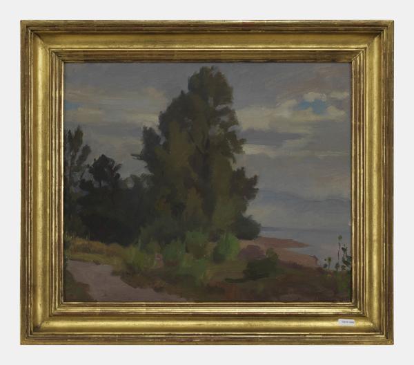 Bord de lac à Allaman, huile sur toile, signée, 38,5x46 cm