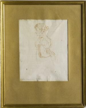 Trois études de jeunes femmes, mine de plomb, l'une inscrite " D...