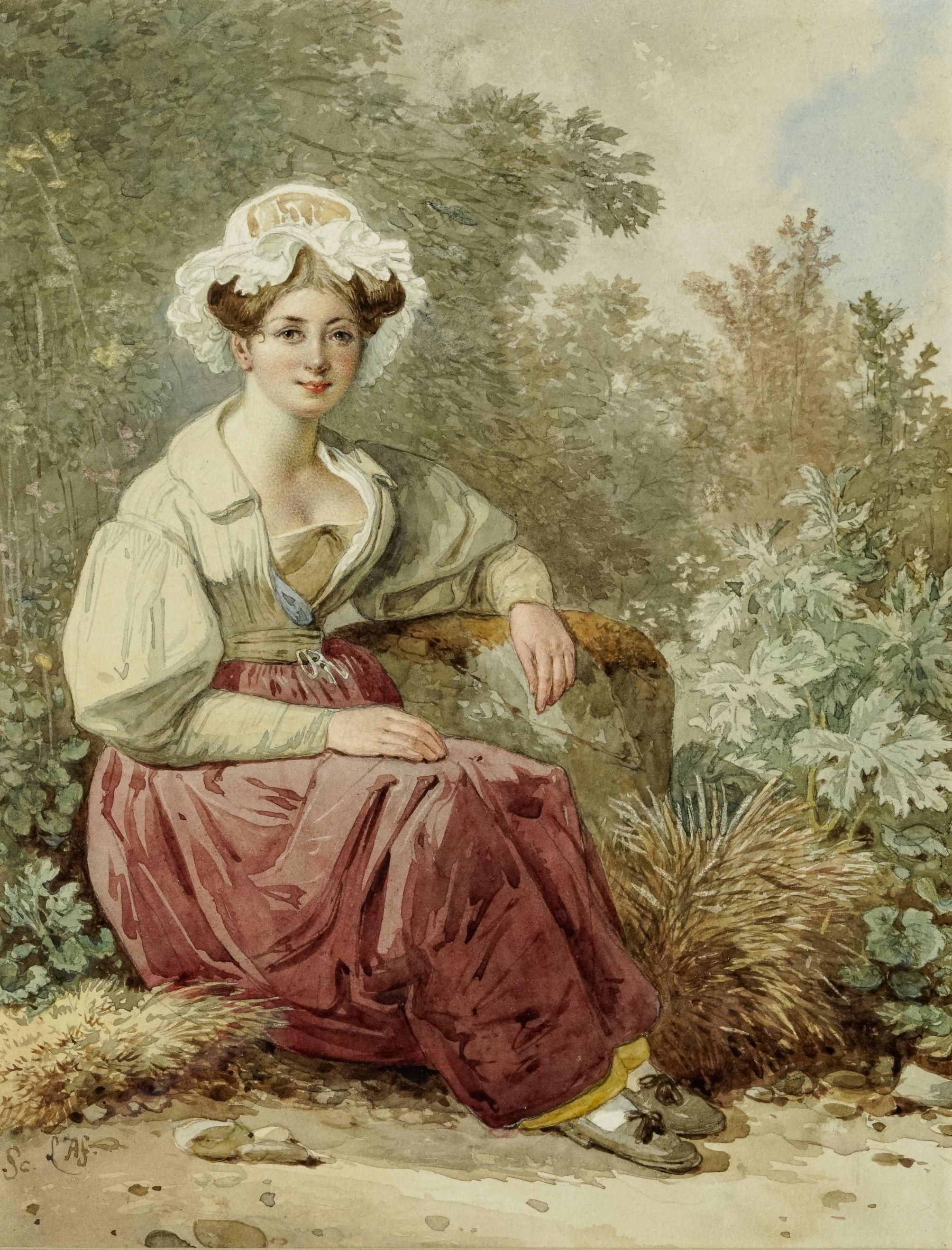 Personnages de dos, aquarelle et plume sur papier, 10x15 cm