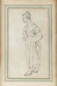 Etude de femme en robe, mine de plomb, 25,5x14,5 cm