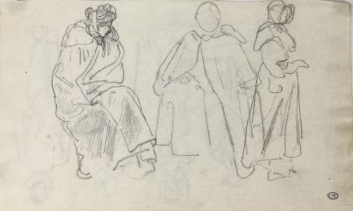 Etude de femmes bras croisés et croquis de femmes assises, mine...