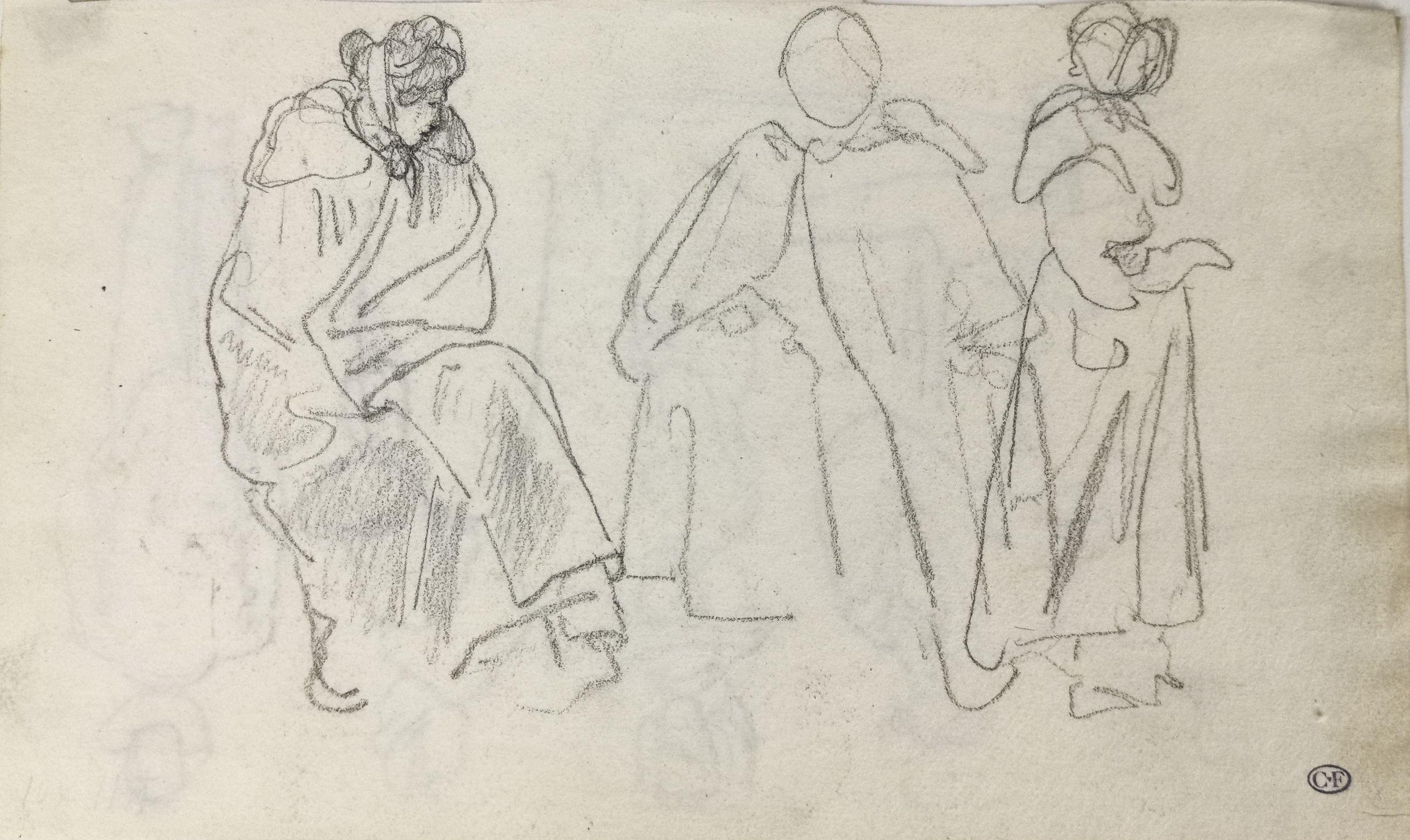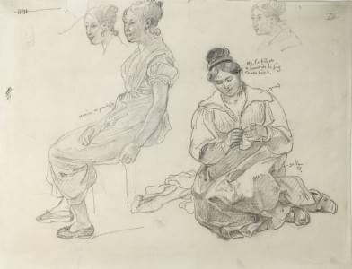 Paysage campagnard avec un couple assis, crayon, encre et rehaut...