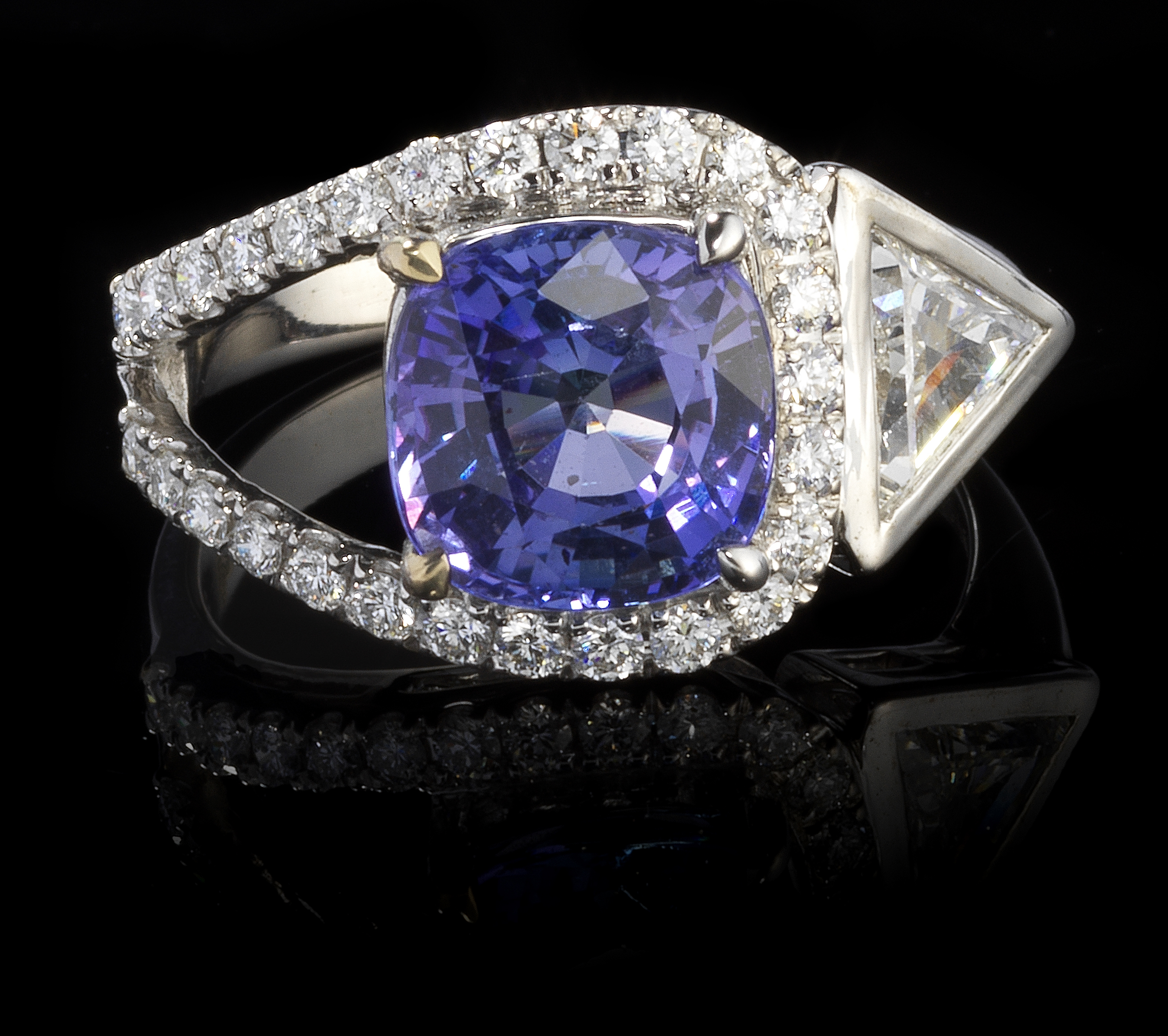 33. *Bague sertie d'une tanzanite taille coussin (3,16 ct)