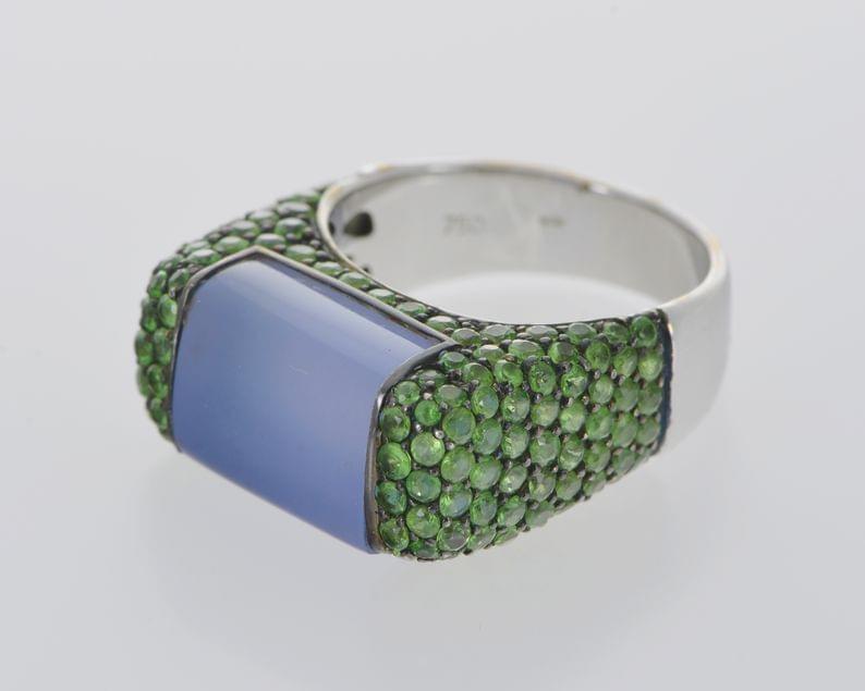 105. Adler, bague pavée d'émeraudes et sertie d'une pierre de lune
