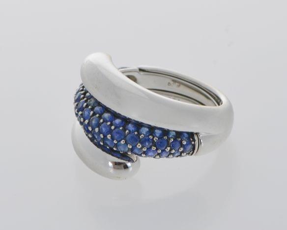 L'anneau de saphirs peut se détacher pour être porté tout seul, or gris 750, doigt 52-12, 16 g