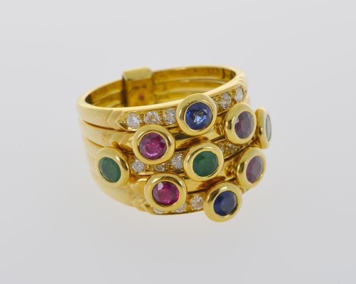 100. Adler, Sérail, bague 5 rangs sertie de rubis, saphirs, émeraudes et diamants