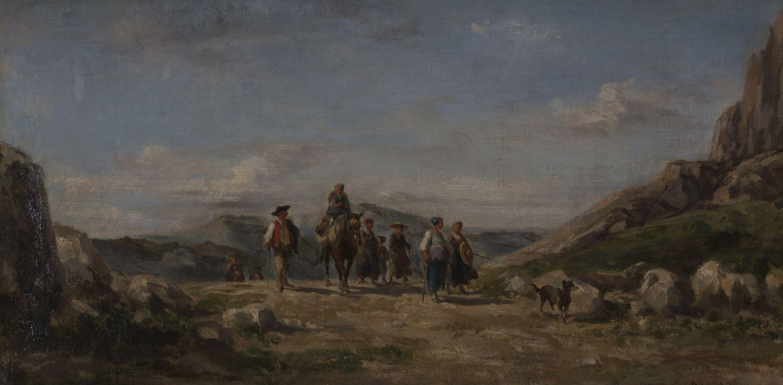Jardin animé, huile sur panneau, signée, 22x34 cm