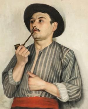Homme à la pipe, huile sur toile signée, 57x46 cm