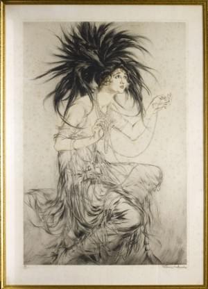 Femme à la coiffe de plumes, eau-forte, signée à la mine de plom...