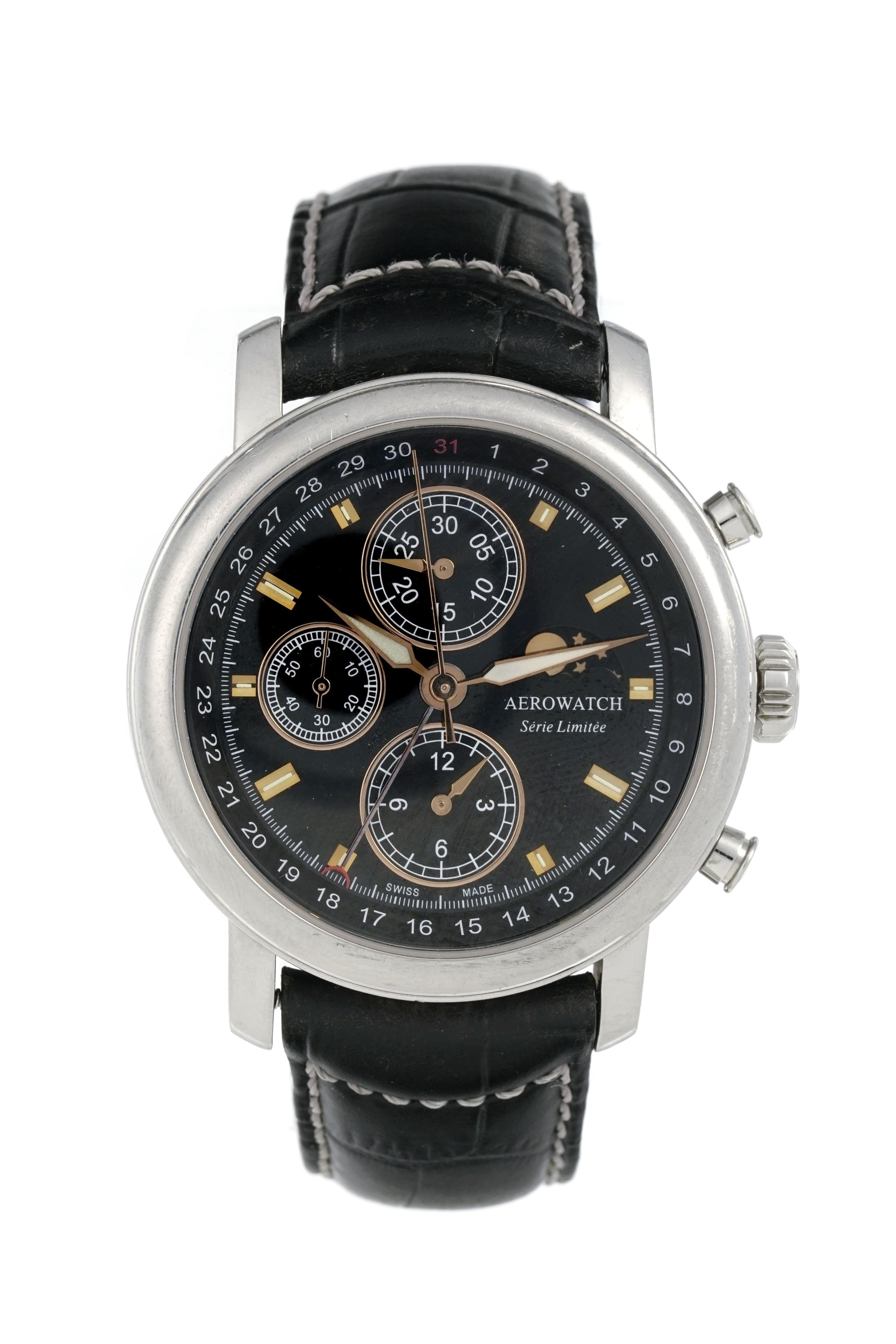 886. Aerowatch, montre ronde automatique chronographe, série limitée