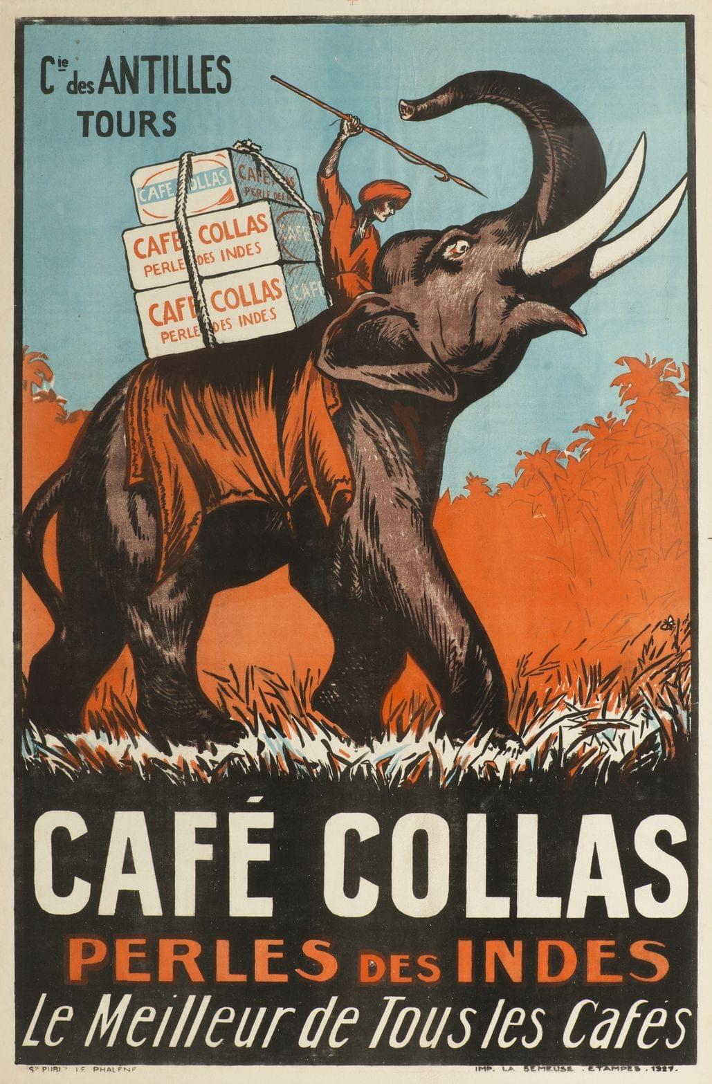 Café Collas, Perles des Indes, lithographie originale, imprimée par la Semeuse,1927, 113x74 cm