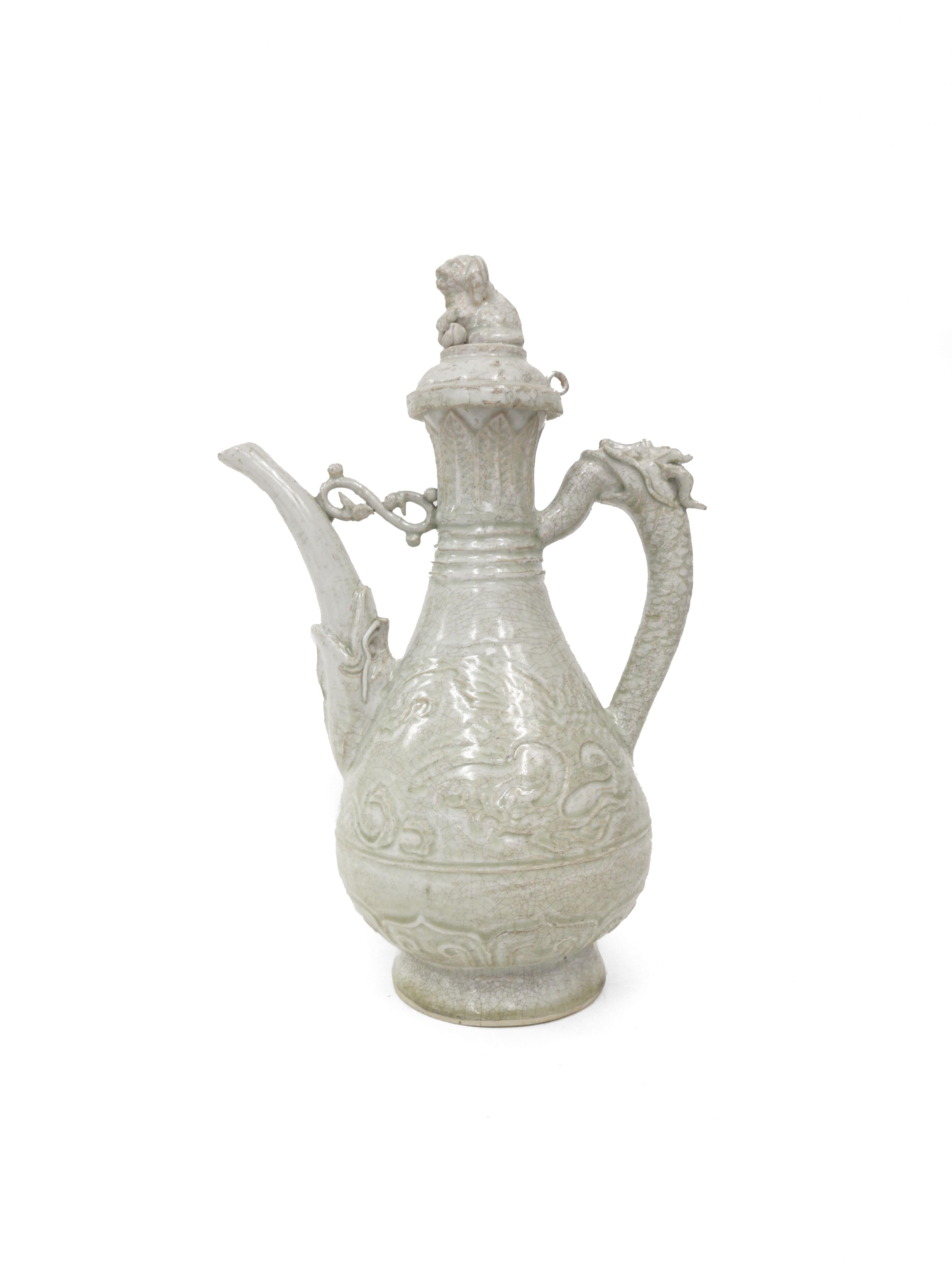 Céramique émaillée crème à décor incisé de dragons, H 29 cm