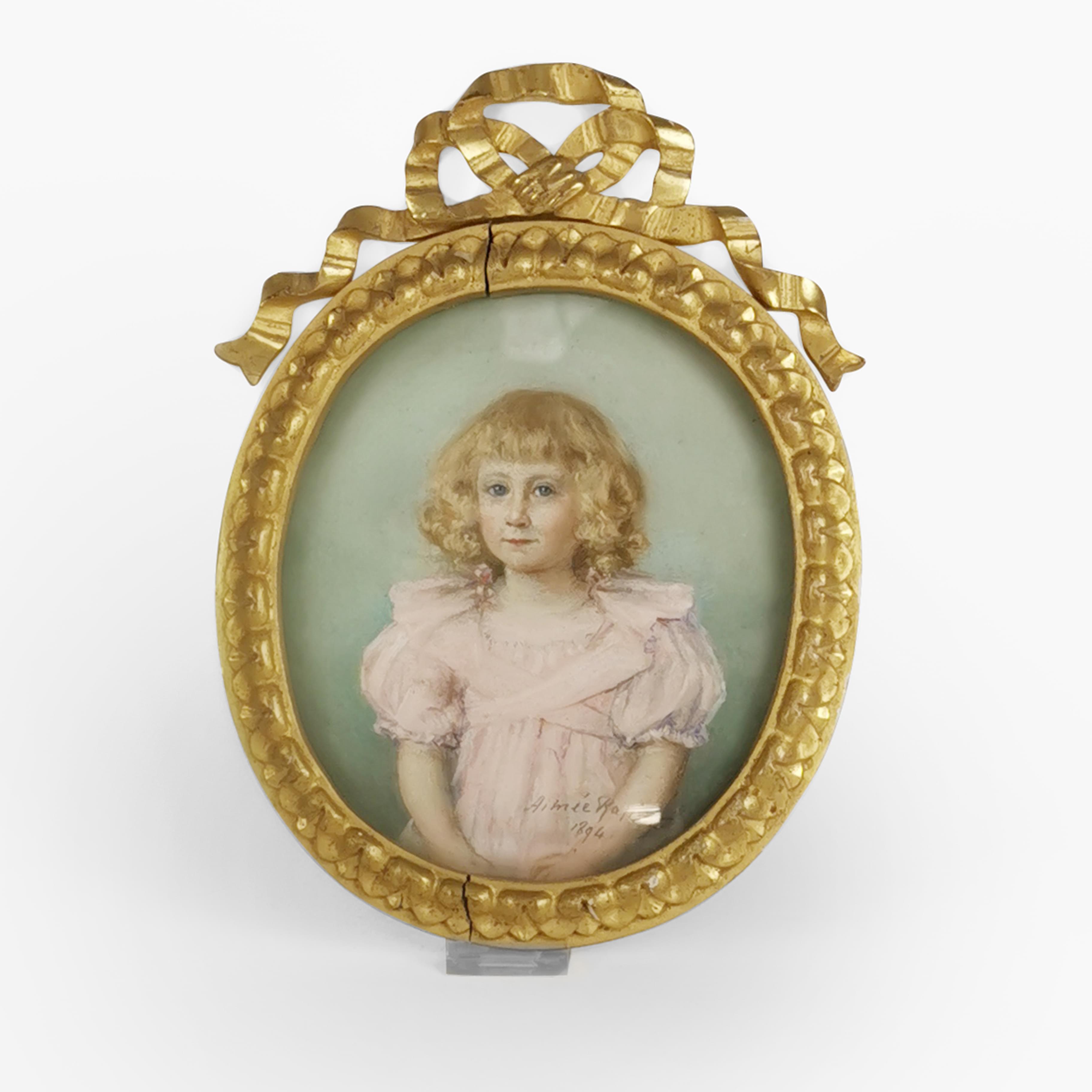 Portrait de jeune fille, gouache, signée, 20x17 cm