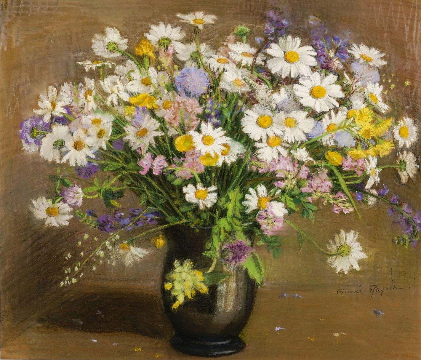 Bouquet de fleurs, pastel sur papier signé, 48x55,5 cm
