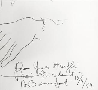 1 vol. livre enrichi d'un dessin au stylo et d'un carton d'invitation signé