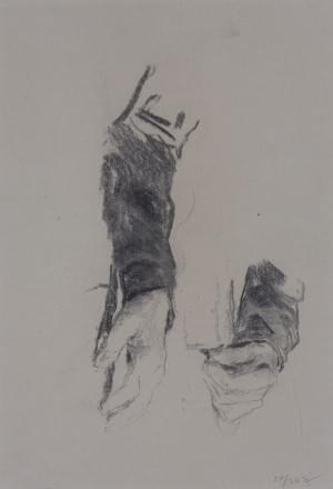 Femme de profil et étude de main au verso, fusain sur papier, 33...