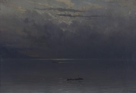 Effet de lumière sur le lac, huile sur toile, signée, 32x46 cm