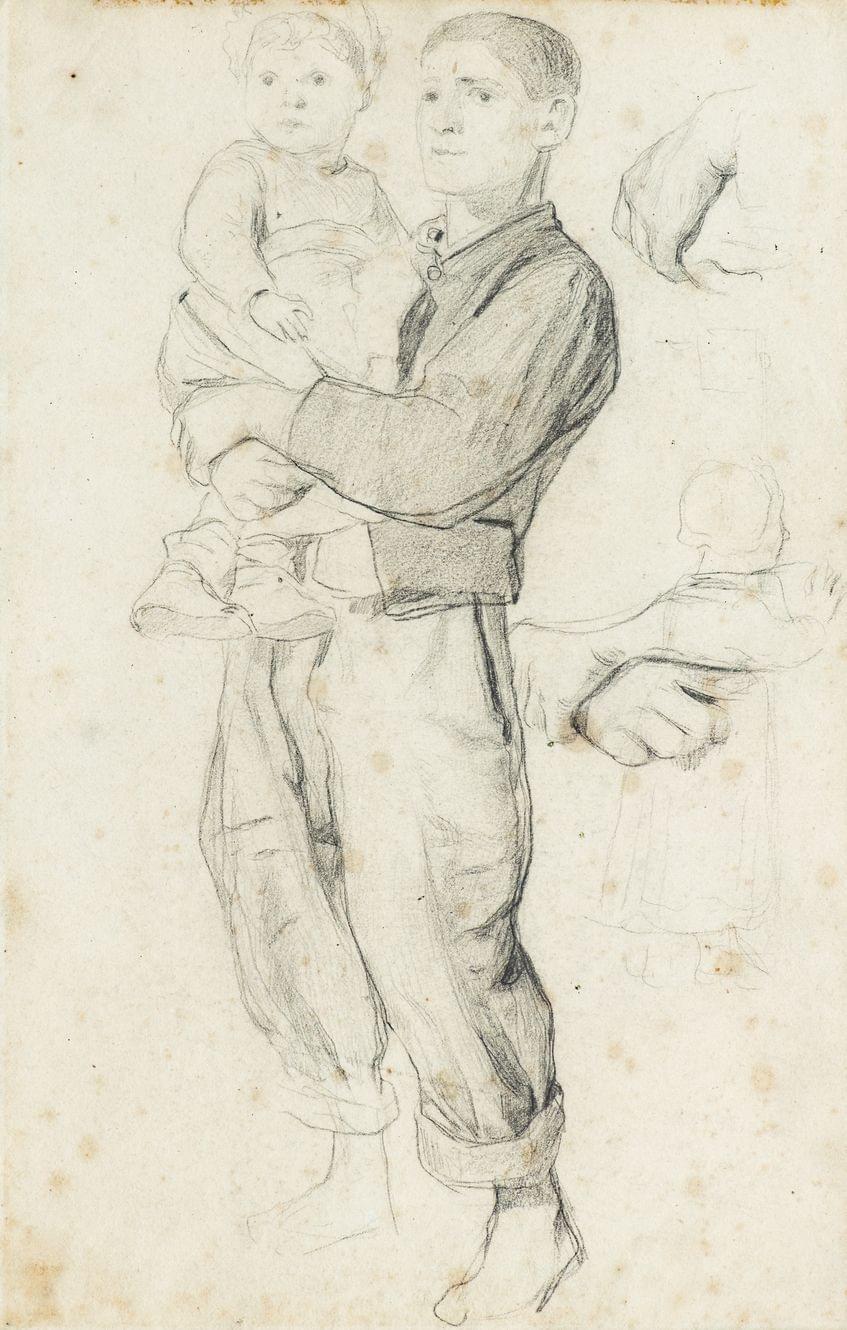 Père et son enfant, mine de plomb sur papier, 32x20,5 cm