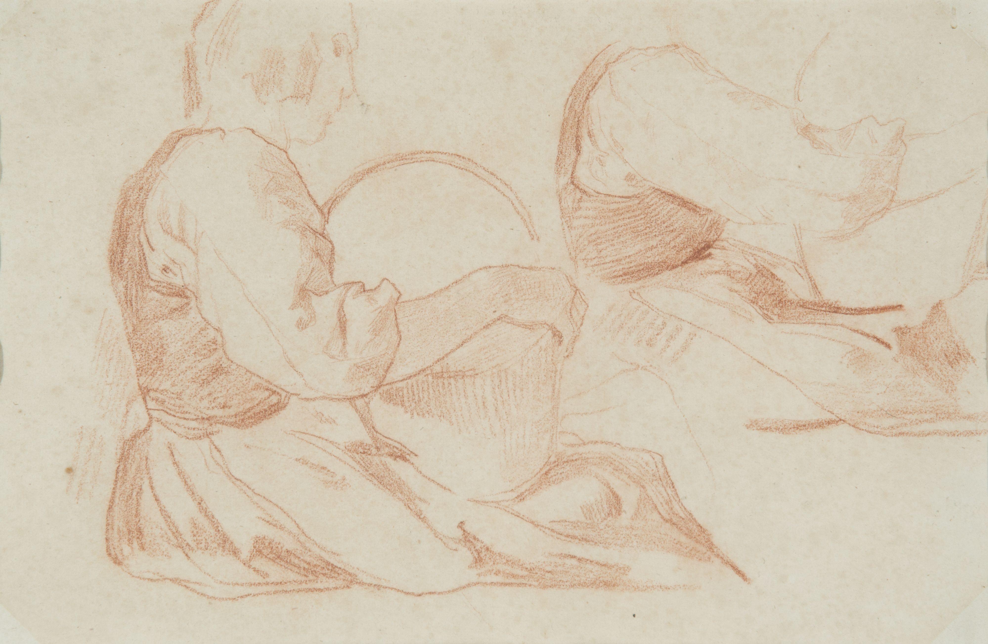 Etude de deux jeunes hommes capés, sanguine sur papier, 29x19 cm...