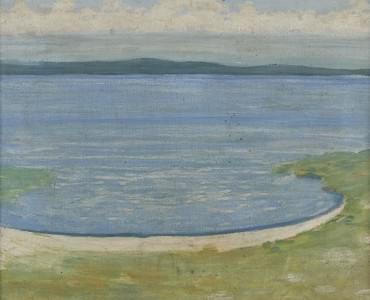 Bord de lac, huile sur toile, signée, 38x46 cm