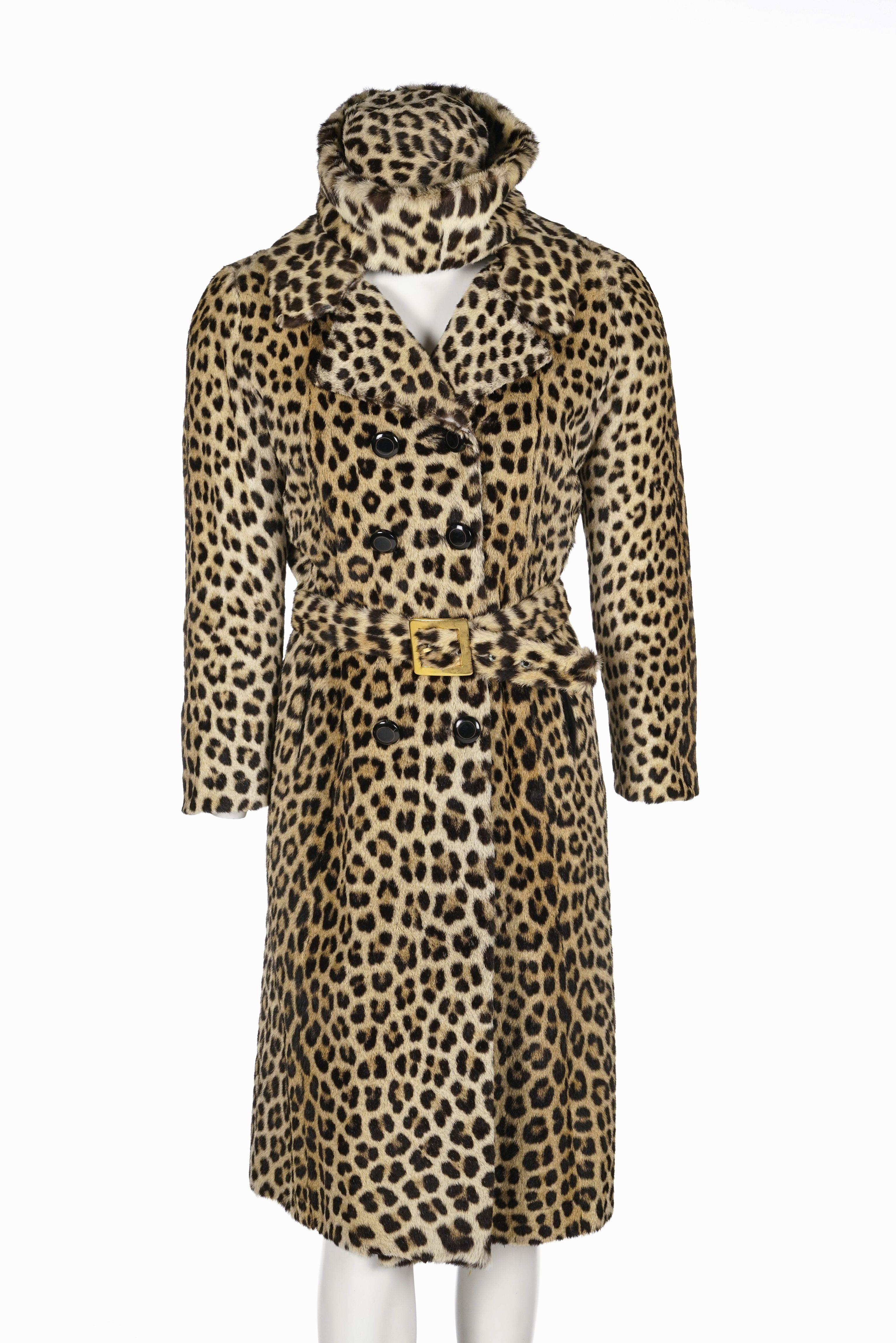 Léopard, boutons ronds. On joint une ceinture et toque en fourrure
