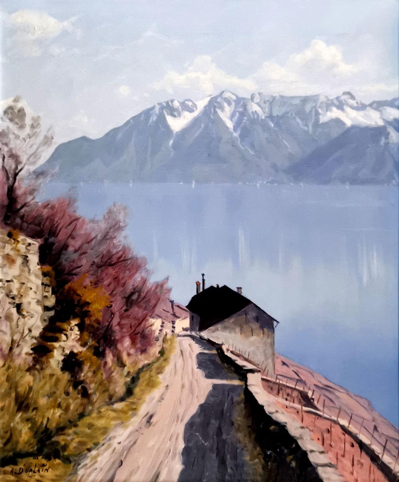 Le Grammont et le lac Léman, huile sur toile, signée, 46x38 cm