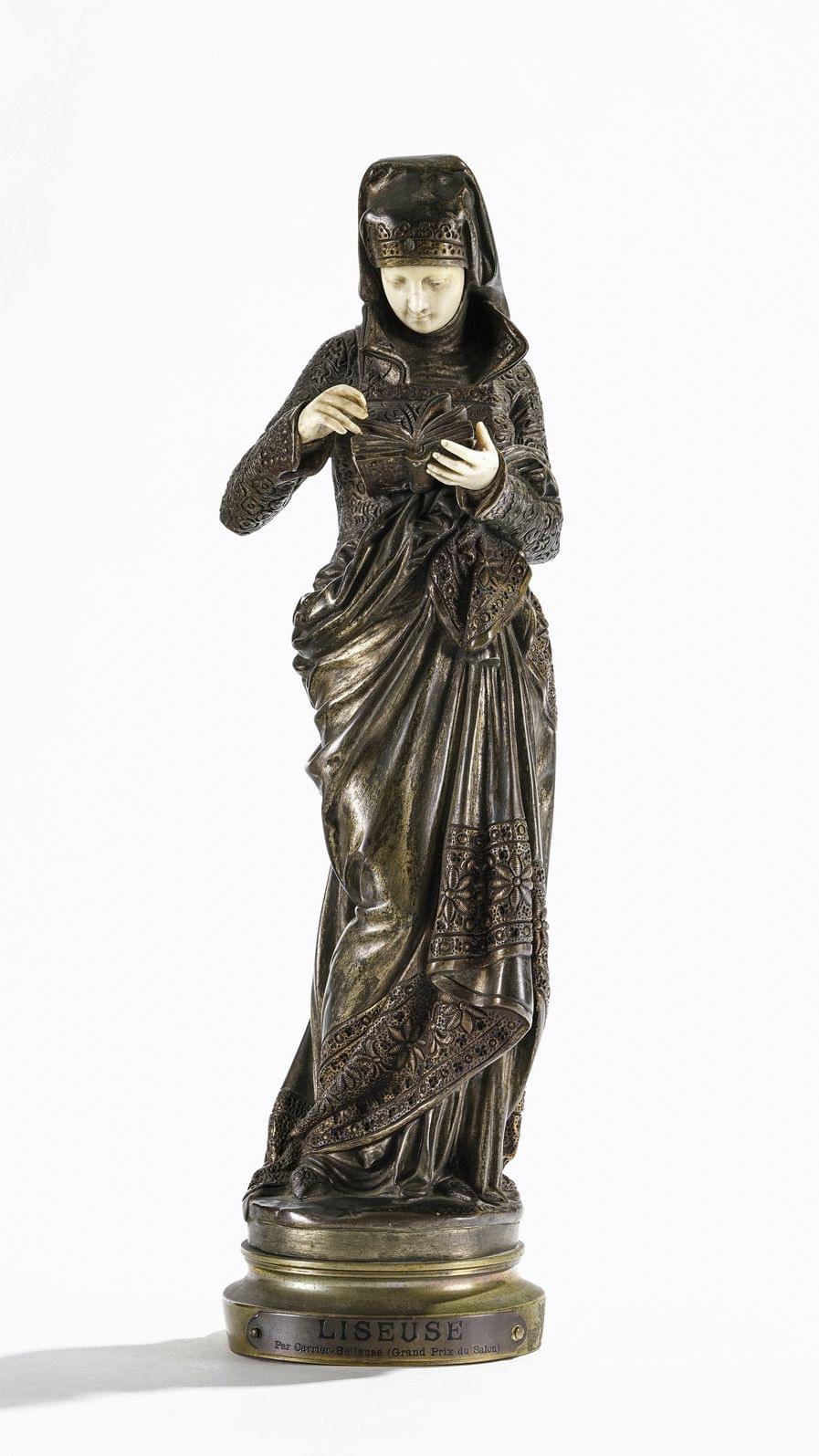 La liseuse, statuette chryséléphantine, bronze et ivoire, signé, H 33 cm