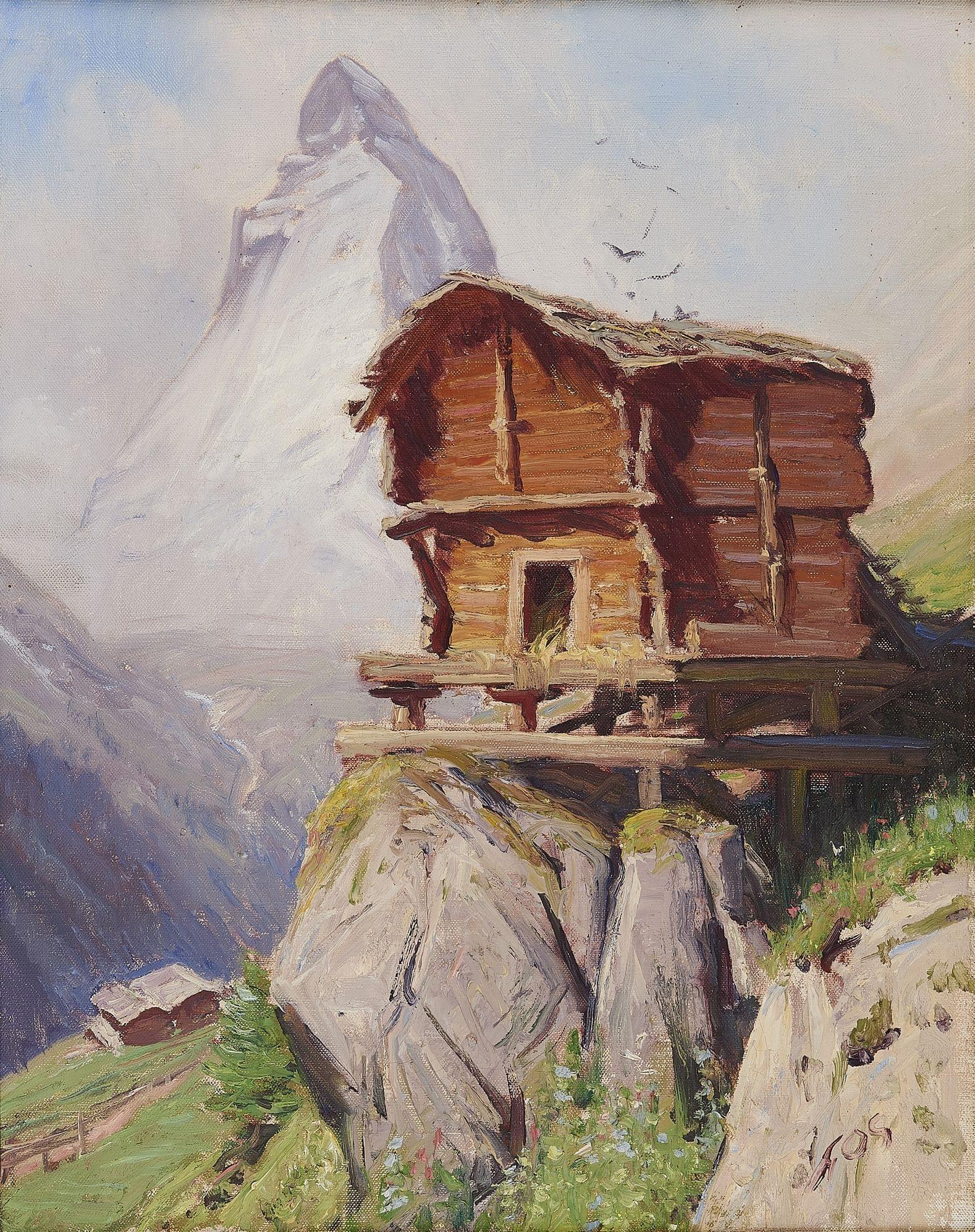 Le Cervin depuis Findelen, Zermatt, huile sur toile, signée, 50x40 cm