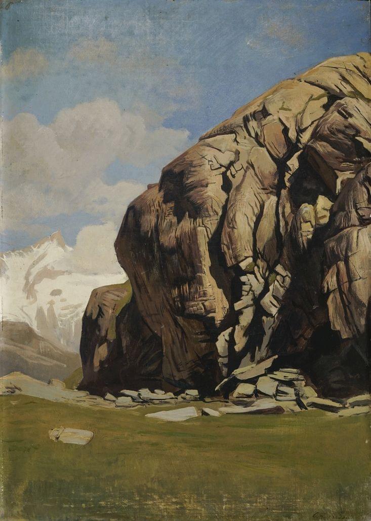 Calvaire dans les Alpes, huile sur toile, signée, 46x38 cm