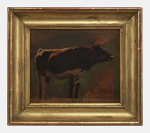 Cheval blanc, huile sur panneau, signée, 35x42 cm