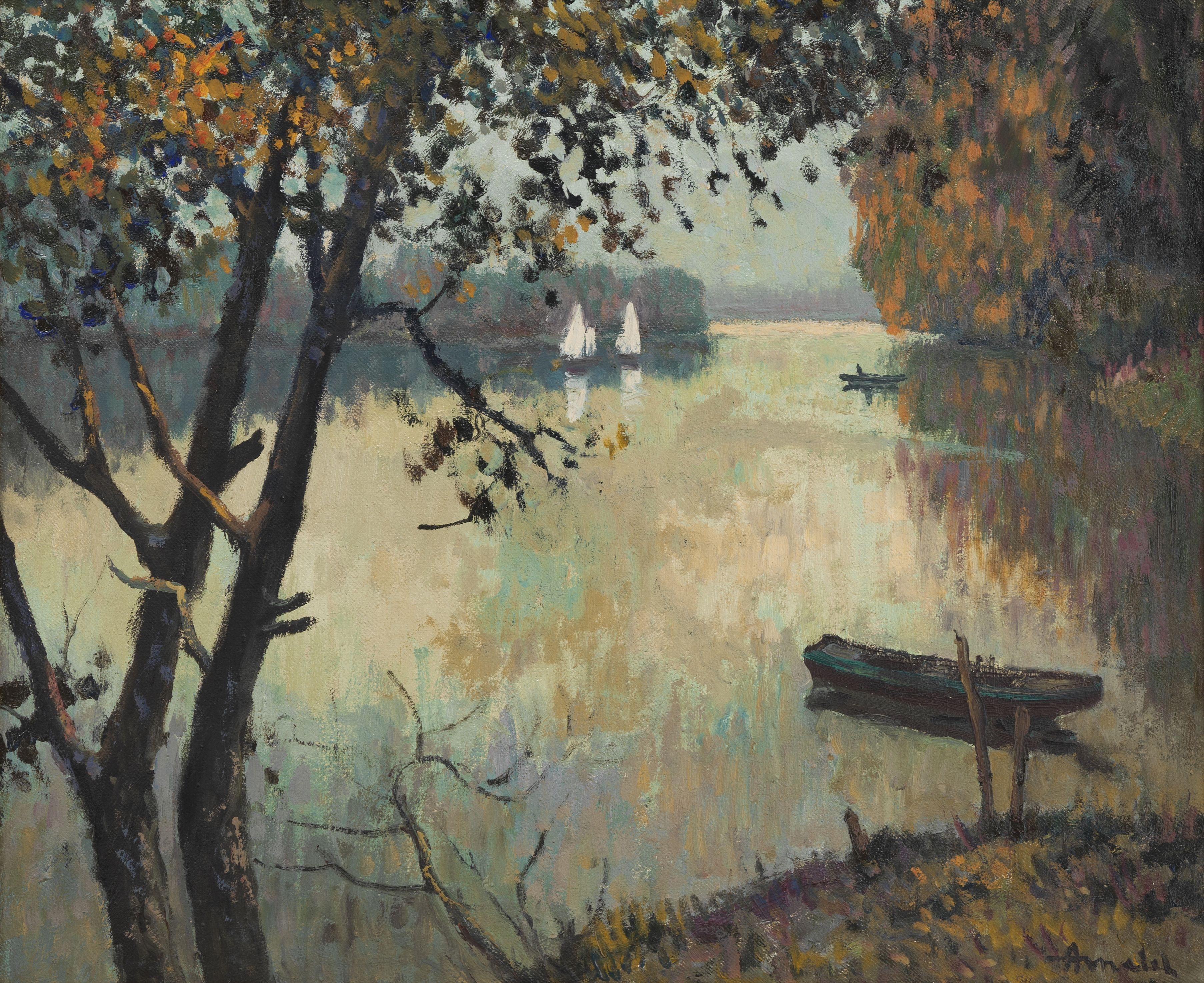 Vue du lac, huile sur toile, signée et datée 1911, 43x55 cm