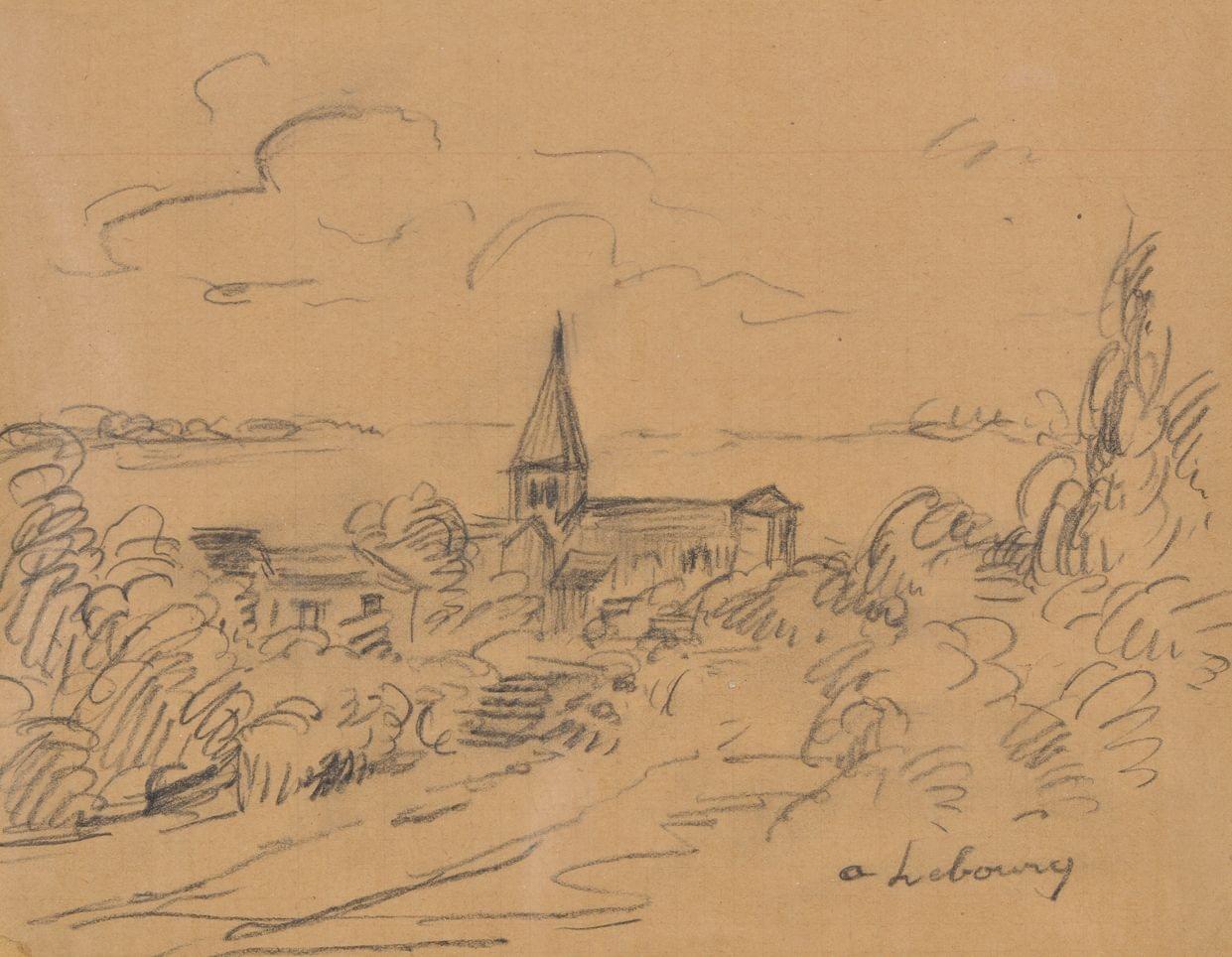 Village, mine de plomb sur papier signée, 18 x 22 cm