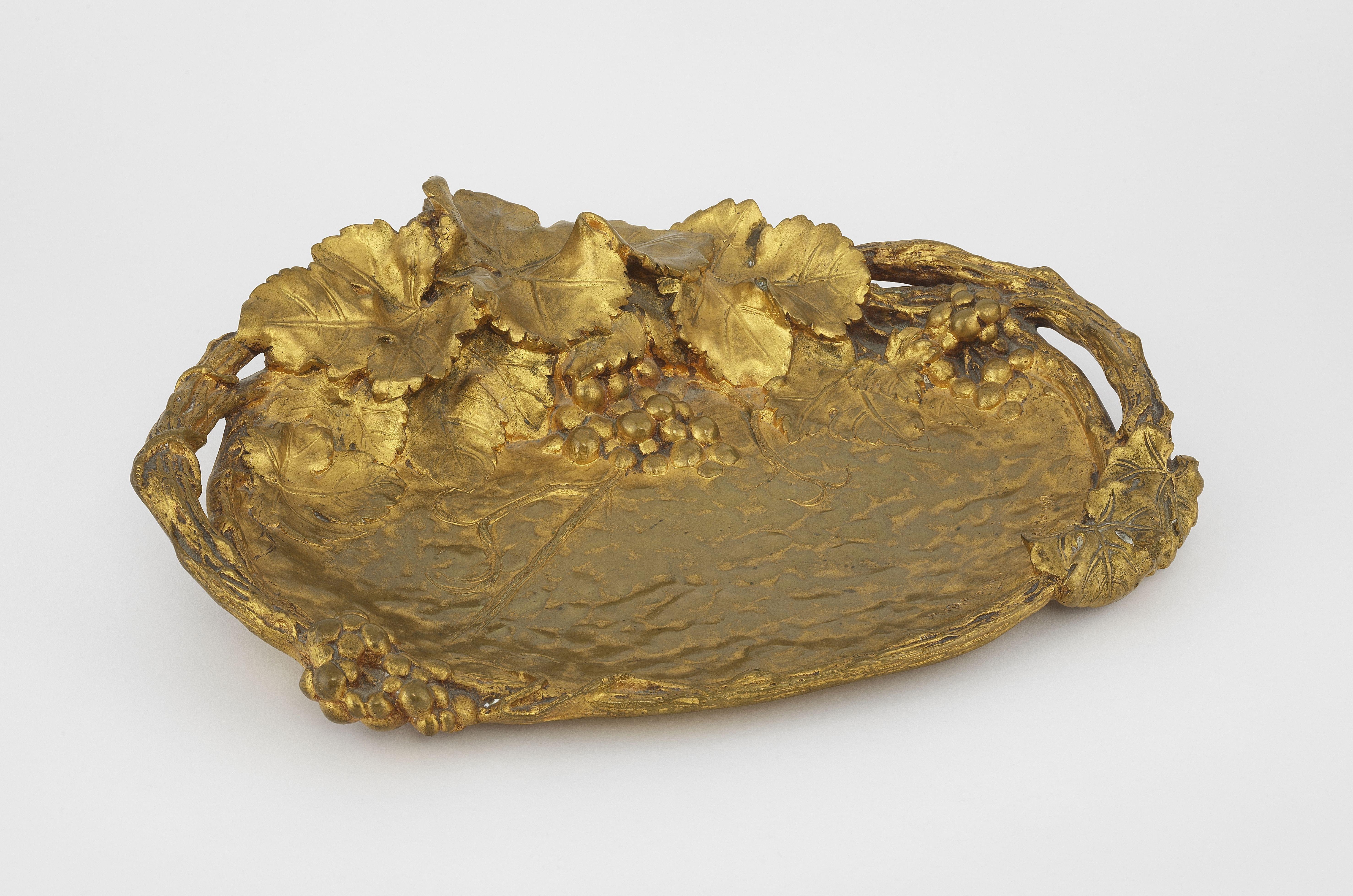 Grande coupe à décor de pampres de vigne, signée et datée salon 1912, 46x36 cm