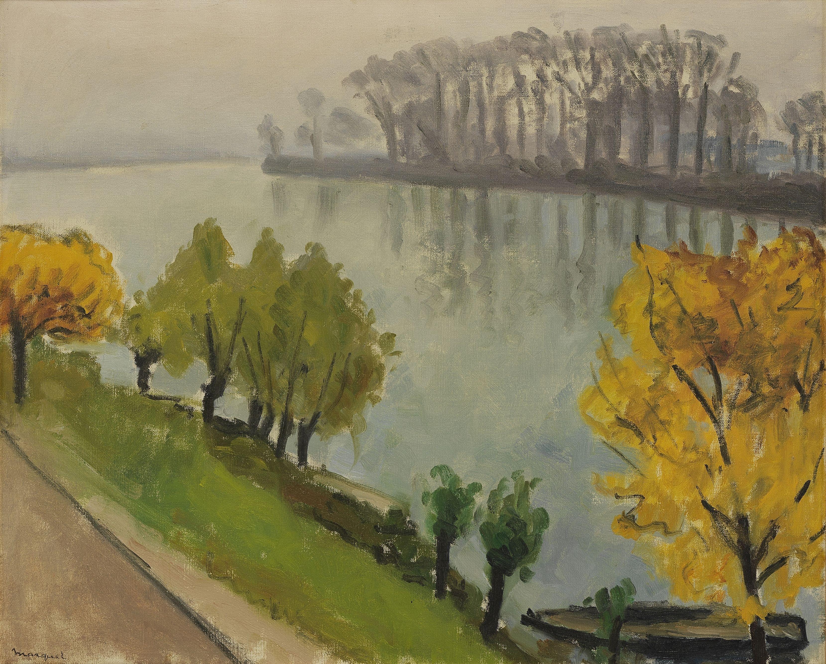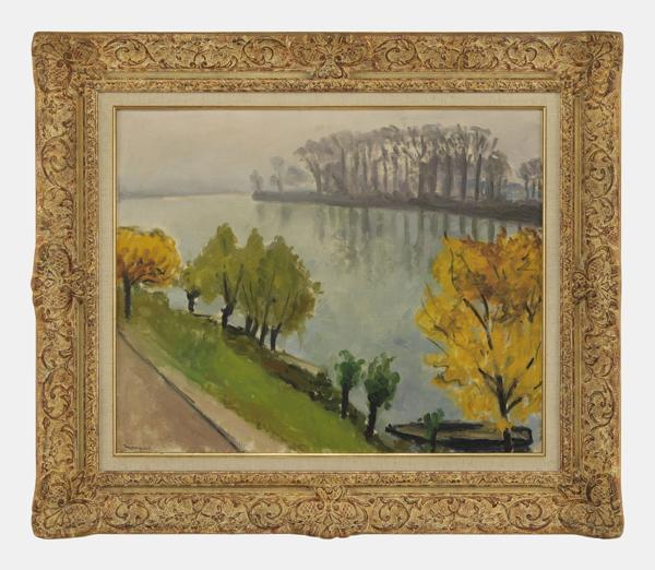 Automne 45, La Frette, huile sur toile, signée, numérotée 14 II B, titrée et datée par Marcelle Marquet au dos sur la toile, châssis portant le tampon de Lucien Lefebvre-Foinet, 19 rue Vavin et 2 rue Bréa Paris, 49x61 cm. Provenance: Collection privée, Genève