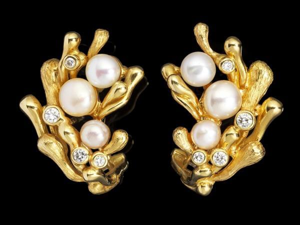 115. Gilbert Albert, boucles d'oreilles stylisées pavées de perles en...