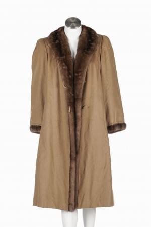 Intérieur doublé en léopard, bordure de vison, tissu camel
