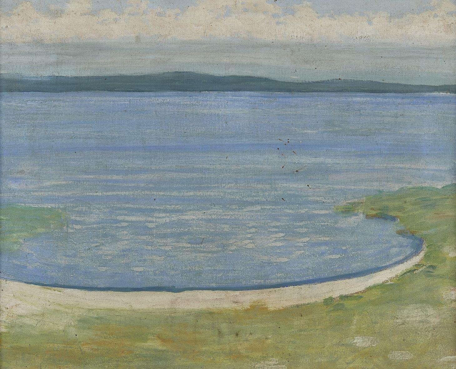Bord de lac, huile sur toile, signée, 38x46 cm