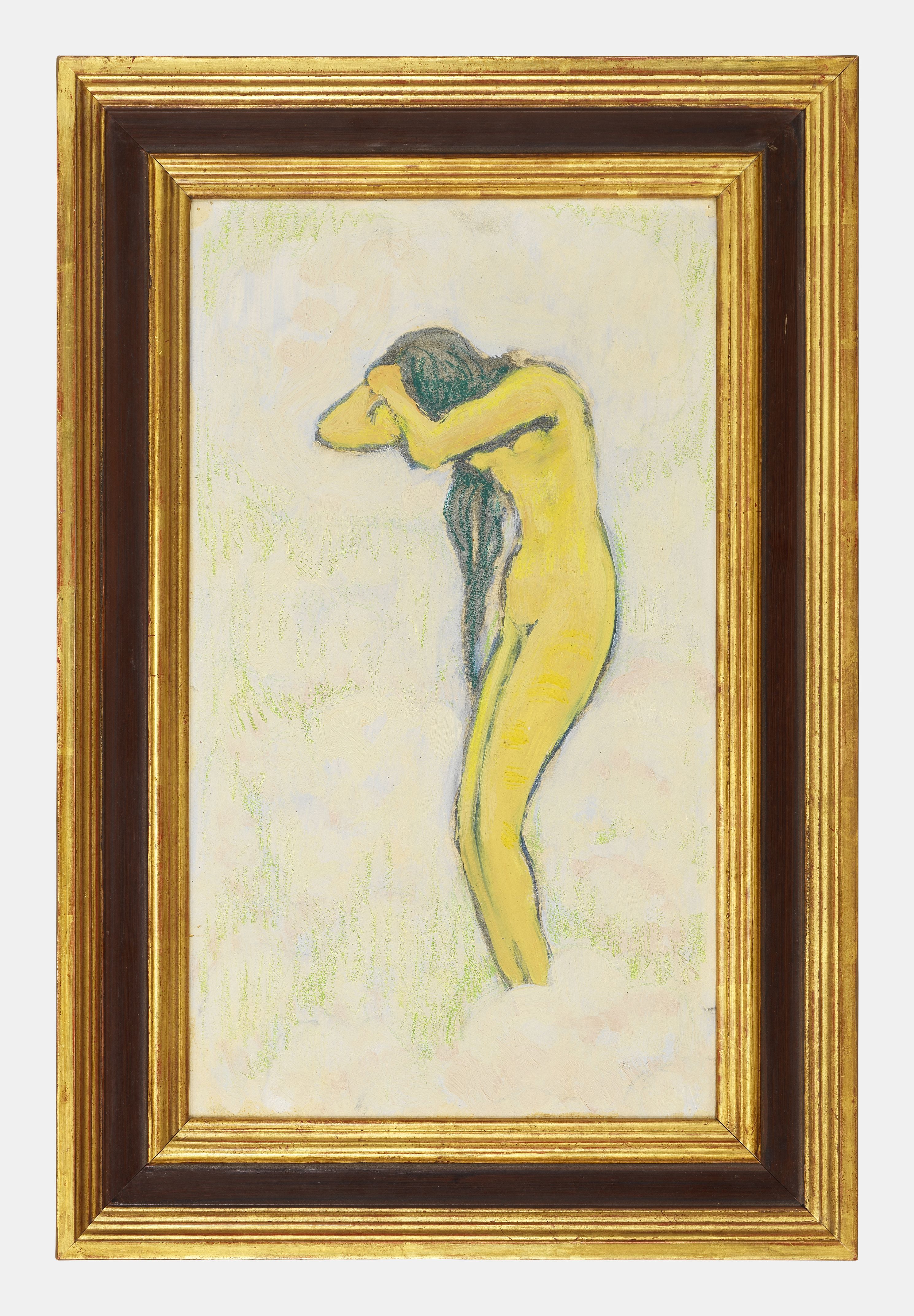 Nu de femme, technique mixte sur papier marouflé sur toile, non signée, 41x25 cm