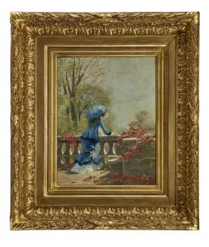 Jeune femme en robe bleue, huile sur toile, 35x28 cm